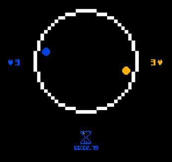 "This is an experimental game where you watch balls bounce around the stage while pickups appear, each with one of two random effects: damage or heal.?
